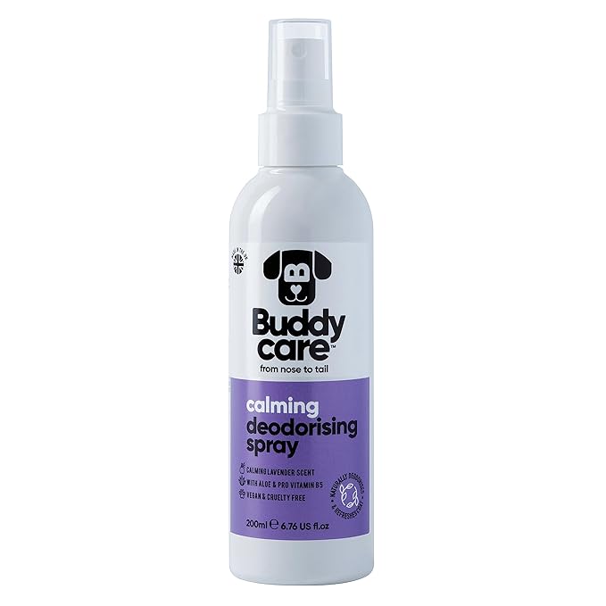 - WITH ALOE & PRO VITAMIN B5 - Buddycare Dog Deodorising Spray is made with a gentle PH balanced formula that's kind to skin, while conditioning agents like aloe vera and pro-vitamin B5 work to nourish and protect their coat.