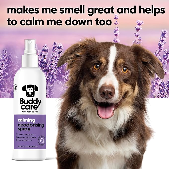 - CALMING LAVENDER DOGGY DEODORISING SPRAY - Freshen up Fido with a lavender scented deodorising spray that not only helps eliminate doggy odours but also brings a touch of serenity and calmness to their daily adventures. No more stinky pooch, just a serene scent with calming properties wherever they go!