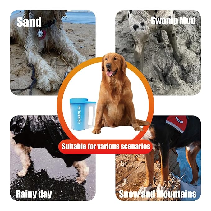 - 【Gentle Silicone Brush】The muddy paw cleaner is equipped with silicone material, which is soft and skin-friendly. You don't have to worry about your dog being uncomfortable.The gentle silicone bristles will help remove dirt and mud from your dog's paws- keeping the mess in the pet foot cleaner and not in your house.