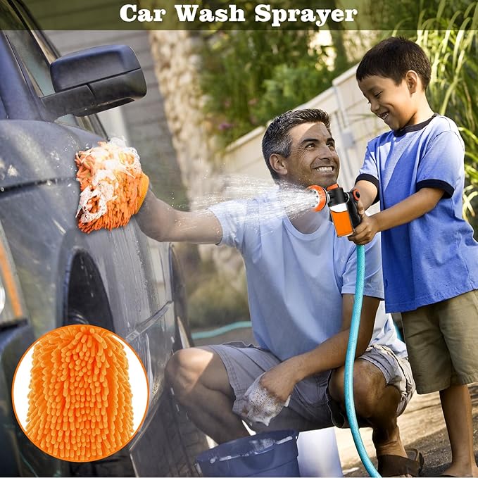 - 8 Spray Patterns: The dog wash foam sprayer has 8 types of nozzles, rotate click spray selector for different settings ( rinse, stream, flat, center, jet, shower, mist, and cone ), whether you need wash your car, or the gentle shower to wash your pet, the 8 patterns have you all covered. which can bathe your pets, water lawns, plants, gardens, wash your car, spray nozzle for garden hose fit your different needs.