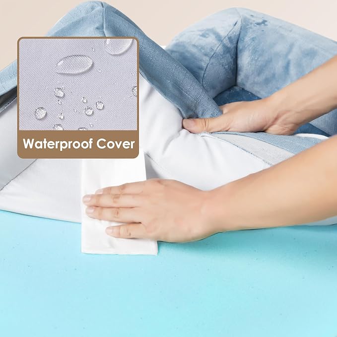EHEYCIGA Orthopedic Dog Beds for Large Dogs, Waterproof Memory Foam Large Dog Bed with Sides, Non-Slip Bottom and Egg-Crate Foam Large Dog Couch Bed with Washable Removable Cover, Washed Blue