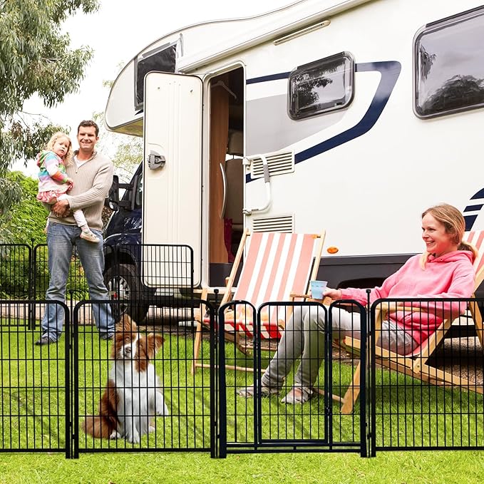 - Really Simple to Install and so Easy to Carry! : The Dog Garden Fence with a Gate Can be Put Together in Just a Few Minutes without Using any Tools. all You Need to Do is Put the two Fence Panels Facing Outward and Align The Rings. Finally, Insert the Pole into the Ring to Fix it. You Can DIY the Garden Fence into any Shape You Want, Such as Square, Rectangle, Round, and so on, Depending on Your House, Garden, or Lawn. It's Foldable and Very Easy to Carry