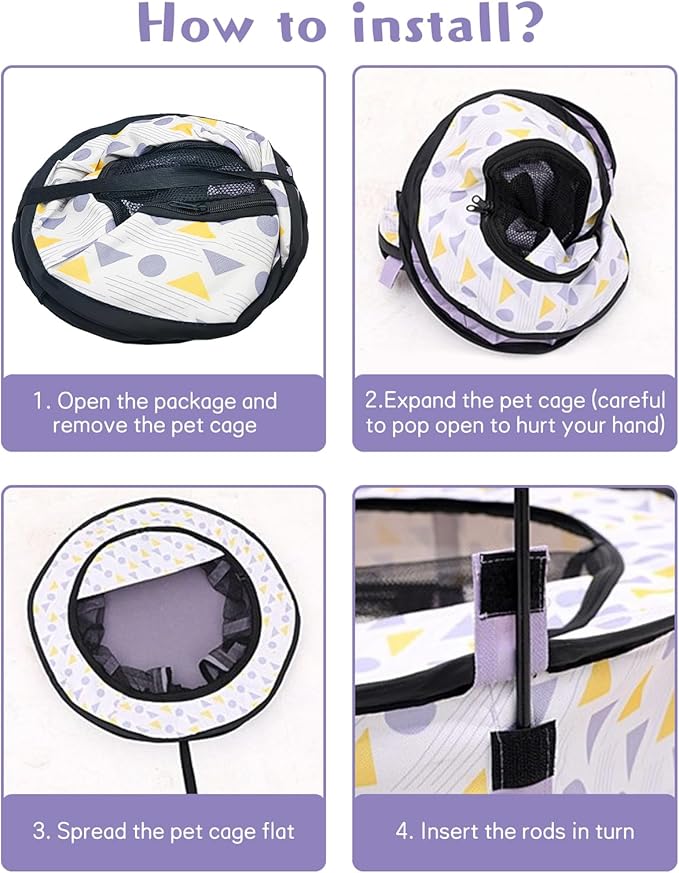 - Easy To Install: Travel pet cage outdoor is no need for complex splicing, automatically pops out and holds in place with support rods after a few seconds of unpacking. Folds back flat when not in use for easy carrying and storing