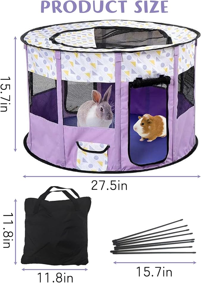 - Spacious Space: Small rabbit indoor enclosure product measures 27.5 x 15.7 inches. Travel cage for bunny circular interior space provides a larger space for small pets to play and rest