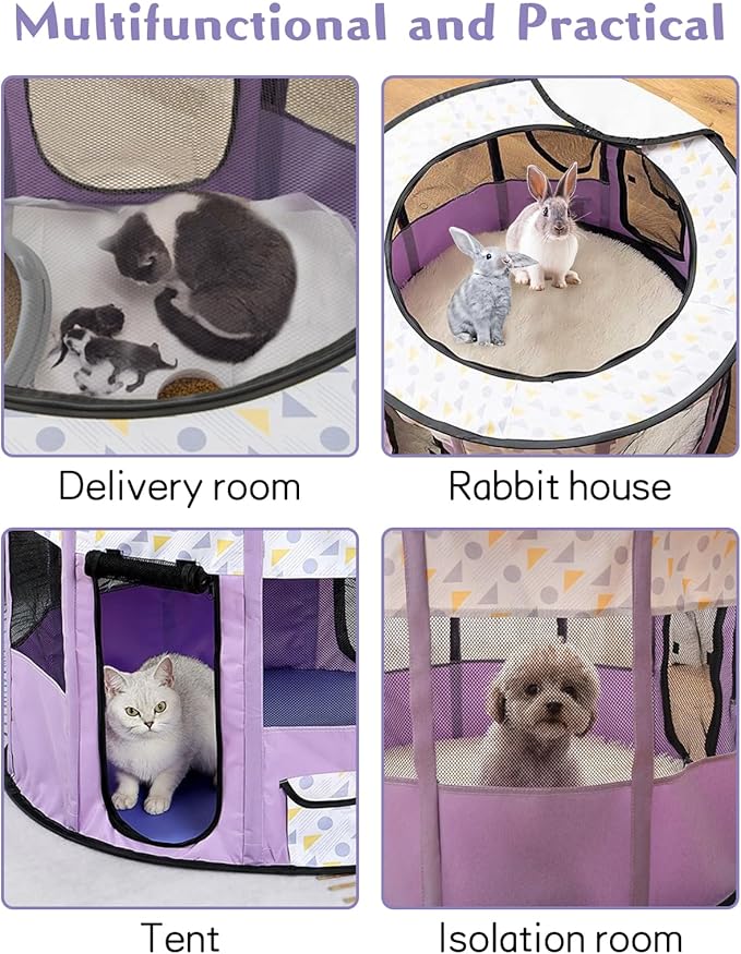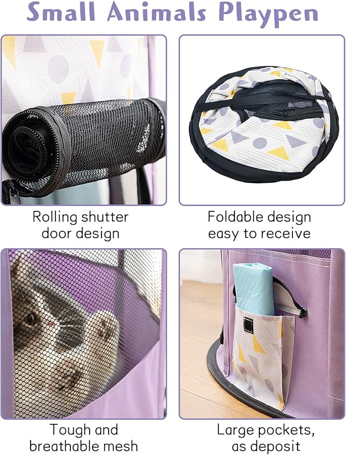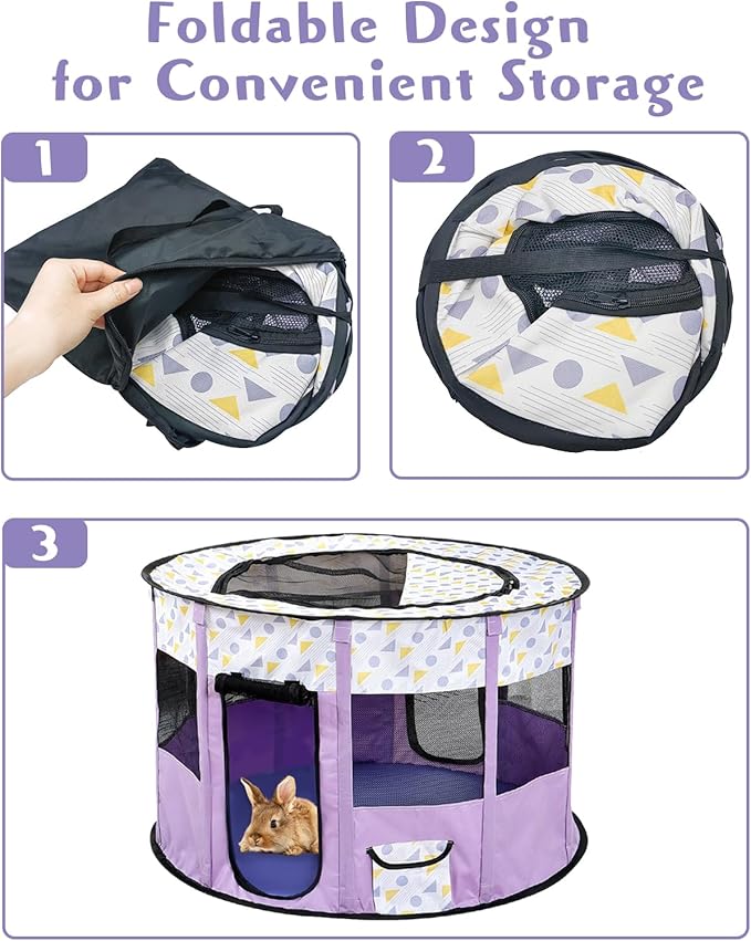 - Fabric Comfortable: Portable bunny cages are made of 600D Oxford and high quality mesh cloth, soft and comfortable fabric and ventilation. The protective joints and reinforced corners of the pet pen effectively protect the safety of pets
