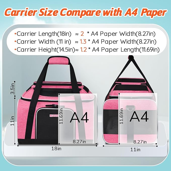 Petskd Top-Expandable Pet Carrier 18x11x11 Inches Delta American United Airline Approved, Soft-Sided Carrier for Small Cats and Dogs with Locking Safety Zippers and Anti-Scratch Mesh(Pink)