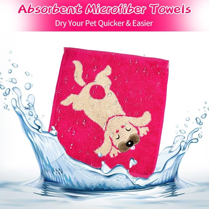 - PET TOWEL: Made of high-quality soft cotton material, the bath towel for dog is fluffy, comfortable and ultra-absorbent, making drying excess water from your pet frizzy fur a breeze. The bold bright color and cute puppy design on both sides of the puppy towel makes bathing and cuddling fun for your four-legged friend.