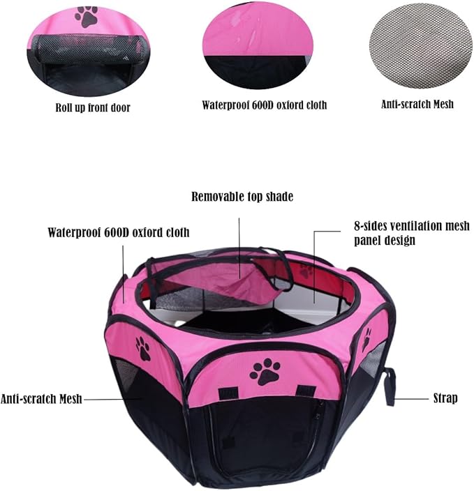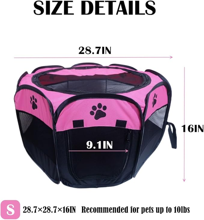 Portable Pet Playpen,Foldable Dog Playpen for Dogs and Cats,Rabbits,Pet Exercise Pet Tents Indoor Outdoor Use (S(28.7" x 28.7" x 16"), Rosered)