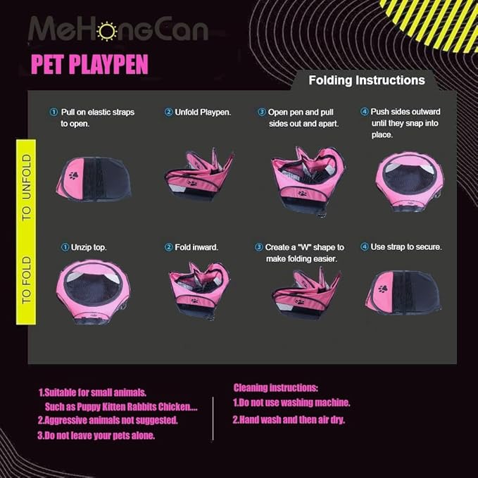 - 1.【Pet Pen Size】:Our Puppy playpen size: 28.7”(Diameter) x 16" (Height), great for small animals up to 10lbs,please measure your pets before purchase.