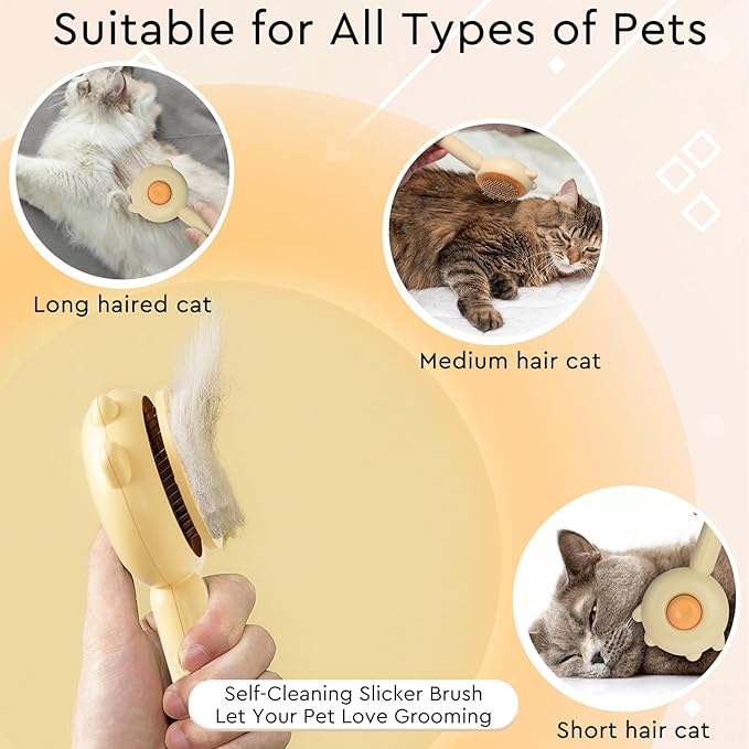 GJEASE Cat Grooming Glove Brush,Self-Cleaning Slicker Pet Brush for Short and Long Haired pets,Dog Bath Brush for Shedding and Grooming,Removes Loose Hair and Tangles,Promote Circulation