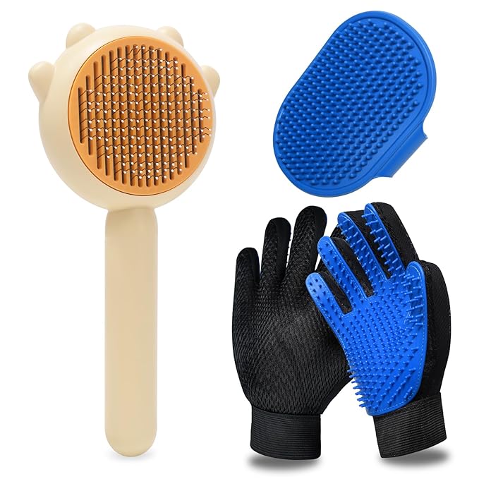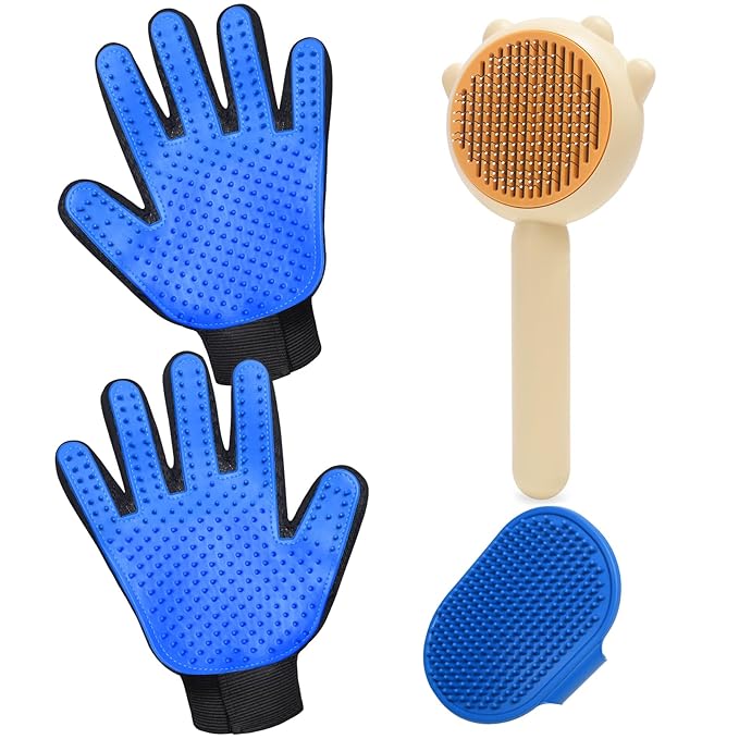 - Perfect Grooming Combination:1 pcs Dogs Cats Brush,1 pcs Dogs Cats Grooming Glove,1 pcs Dogs Cats Bath Brush;The grooming kit can be used short, medium and long, thick, thin and curly haired pets,let your pet’s coat soft and shiny