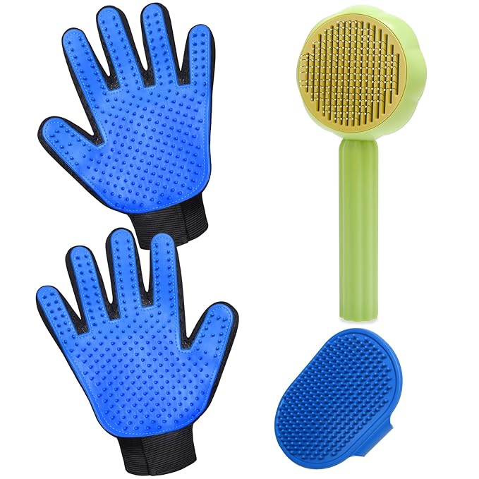 - Perfect Grooming Combination:1 pcs Dogs Cats Brush,1 pcs Dogs Cats Grooming Glove,1 pcs Dogs Cats Bath Brush;The grooming kit can be used short, medium and long, thick, thin and curly haired pets,let your pet’s coat soft and shiny
