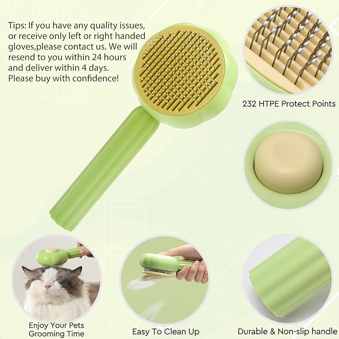 GJEASE Cat Grooming Glove Brush,Self-Cleaning Slicker Pet Brush for Short and Long Haired Pets,Dog Bath Brush for Shedding and Grooming,Removes Loose Hair and Tangles,Promote Circulation