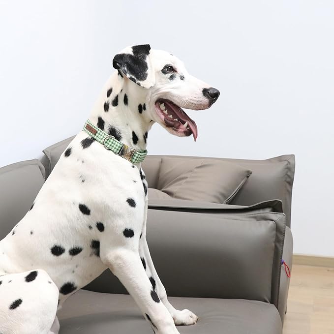 Lionet Paws Dog Collar, Comfortable Adjustable Cute Collar with Metal Buckle for Male Female Dogs Gift, Green&White Grid Pattern, Large, Neck 16-24 inches