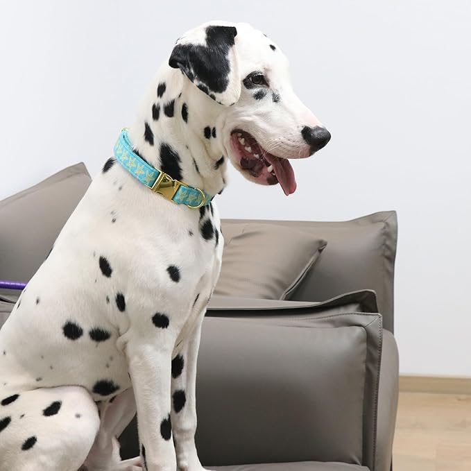 Lionet Paws Boy Dog Collar, Comfortable Adjustable Cute Yellow Starfish Collar with Metal Buckle for Male Dogs Gift, Small, Neck 10-16 inches