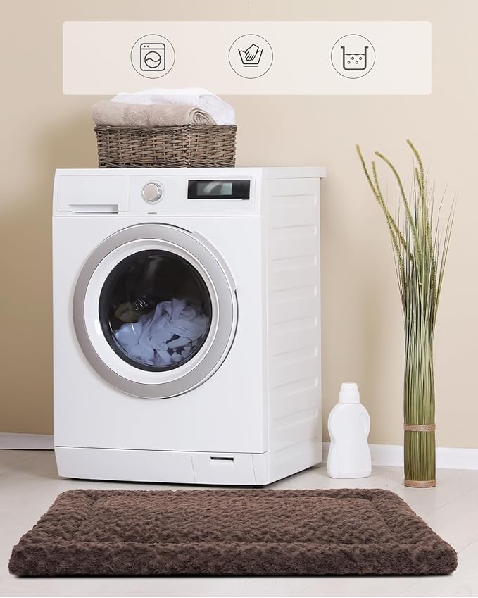 Washable Dog Bed Mat Reversible Dog Crate Pad Soft Fluffy Pet Kennel Beds Dog Sleeping Mattress for Large Jumbo Medium Small Dogs, 29 x 18 Inch, Brown