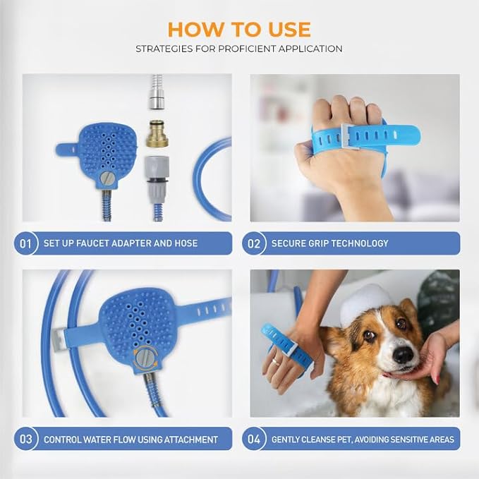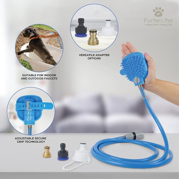 - COMFORTABLE GROOMING EXPERIENCE: Our dog bath brush is designed with soft silicone bristles that provide a soothing massage while bathing. Perfect for pets with sensitive skin, this luxurious dog shower head attachment makes bath time a pampering experience your pet will love.