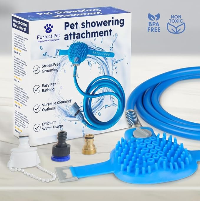 - ERGONOMIC & ECO-FRIENDLY: The ergonomic handle ensures a comfortable and firm grip during bath time. Our dog shower brush is made from sustainable materials, showing love not only to your pet but also to the planet. It pairs perfectly with a bathtub attachment for dog washing.