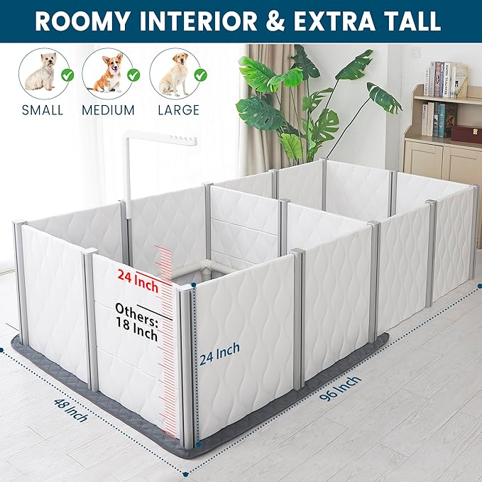- Optimal Safety for Your Pups: Premium PP and HDPE materials used in injection molding - sturdy and tightly connected without gaps; each wall weighs 4 lbs, providing enough weight to make it effectively self-supporting and prevent movement even when a dog leans against it; the pig rail prevents the dam from crushing pups that may get stuck between her body and the edges of the box. All are designed for absolute safety, so you can really relax without worrying about your new-born pups.
