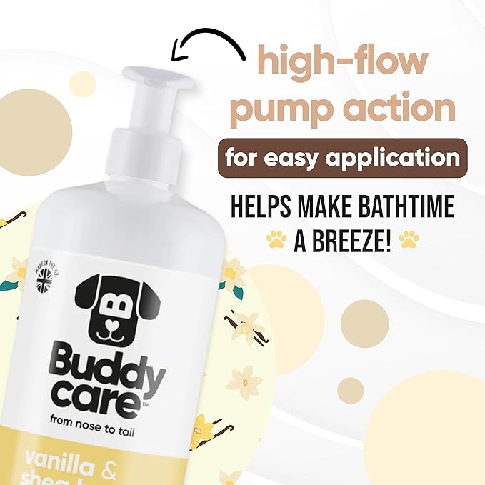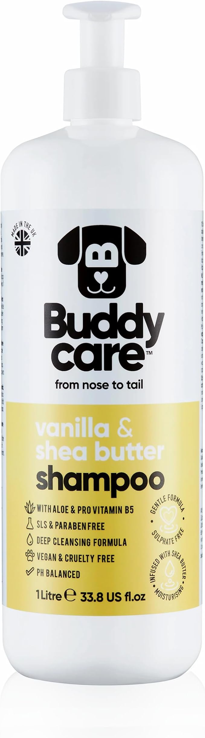 Vanilla & Shea Butter Dog Shampoo by Buddycare | Moisturising Shampoo for Dogs | Vanilla & Shea Butter Scented | with Aloe Vera and Pro Vitamin B5 (33.8oz)