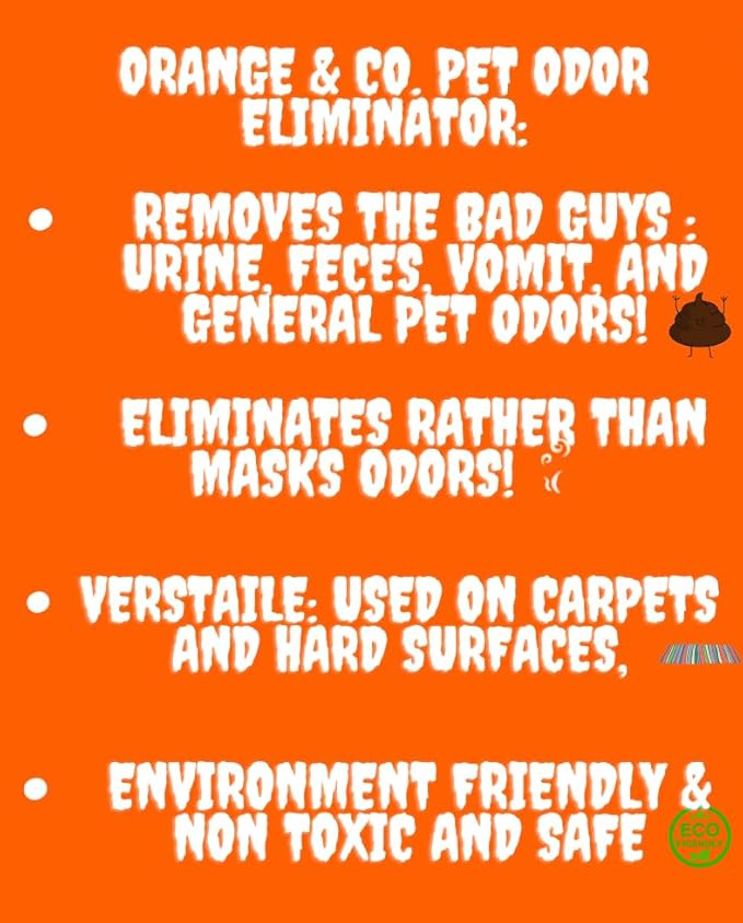 Orange & Co. Traditional Pet Odor Eliminator - Strong Citrus Formula for Stubborn Dog and Cat Pee Odors on Carpet, Furniture, and Indoor/Outdoor Floors - Deodorizer - 16 Fluid Ounces - Puppy Supplies