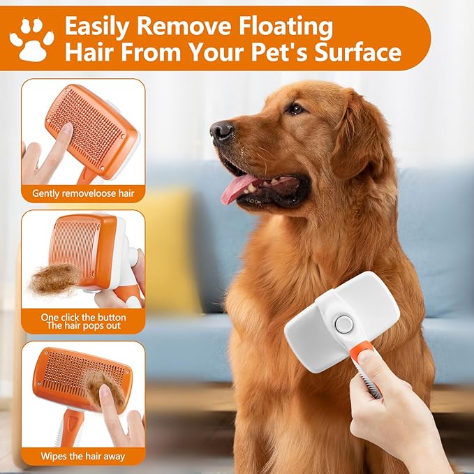- 🐇One-touch Lock Button: Our pet brush features a convenient one-touch lock button that securely holds the bristles in place. This allows for easy cleaning and storage, ensuring the longevity of the brush and maintaining its effectiveness in removing shedding hair.