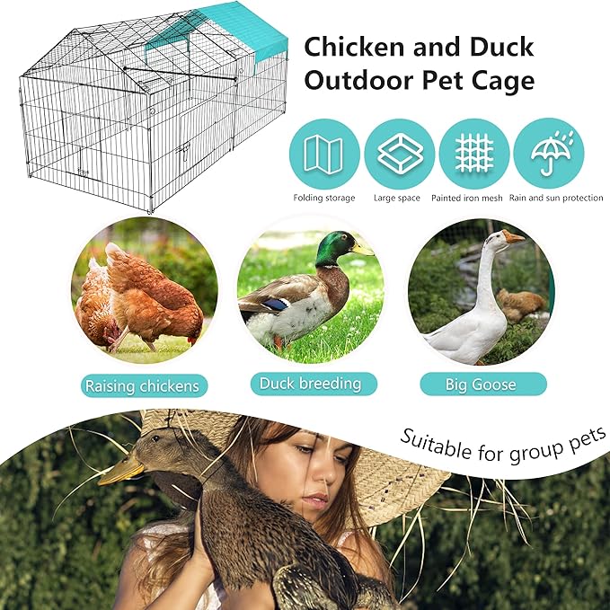 - ✔【Easy to Setup】This chicken coop is a must have for any pet lovers. Quality of our chicken coop constructed with simple assembly instructions will set up in minutes. Our puppy playpen assembles and comes down quickly which is very important as you don't want to be wasting tons of time while enjoying time off. Chicken Coop Chicken Run Chicken Pen Rabbit Hutch