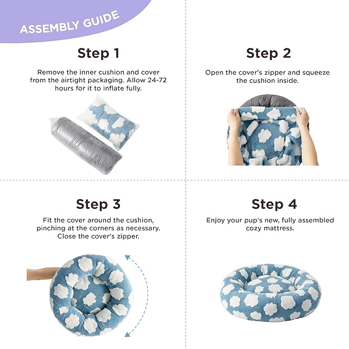 - Snuggle Haven: Love a good cuddle? So does your pet! With its soothing sherpa and raised rim, Lesure's Calming Donut Bed gives your furry friend the perfect nook to curl up in. Offering head and neck support filled with an ideal 2:1 ratio of chopped foam and polyfill to make it a prime spot for relaxation.