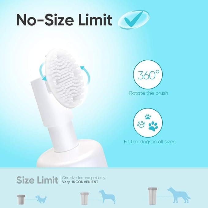 - Efficient Waterless Cleaning Shampoo - Our Pet Paw Cleaner Brush formula is designed to make dog foot washing a breeze. It's a waterless solution that effectively cleans, hydrates, and deodorizes your pet's paws, leaving them clean, soft, and smelling of delightful roses.
