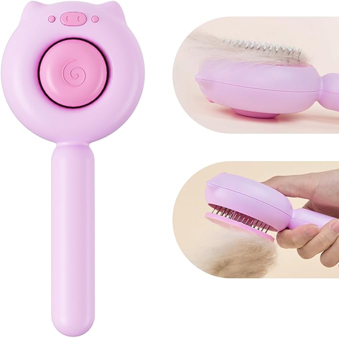 Piggy-Pink Hair Brush, Self Cleaning, Pet Grooming Brush for Shedding, Suitable for Short and Long Haired Cats Dogs and Other Fur Babies, Ergonomic Handle, Ideal Size (5.5 inches)