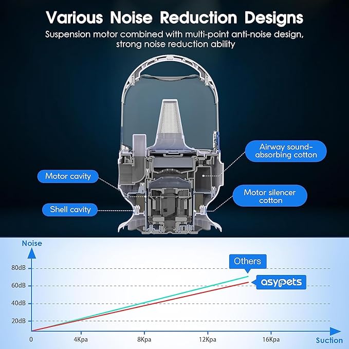 - 🐶Low Noise Technology🐱: Our grooming Vacuum is designed with noise reduction in mind. The suspension motor, combined with a multi-point anti-noise design, significantly reduces noise levels. The double-cavity structure of the motor and outer casing, along with the air duct and motor sound-absorbing cotton, effectively minimize noise and create a calm grooming environment