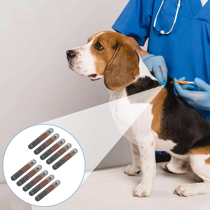 - [Small In Size And Light In Weight]: Animal microchip is small in size and light in weight, and microchip for dog have no impact on the animal. Simple injection or implantation so that lost pet can be easily traced back to it's owner