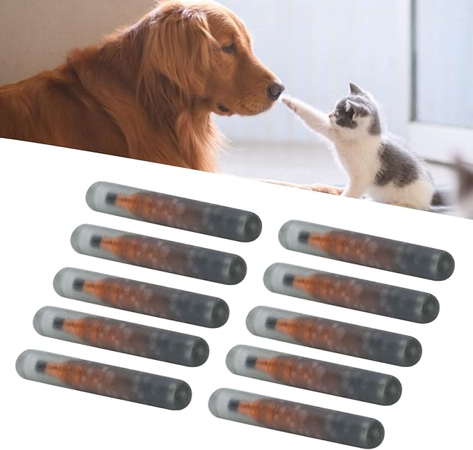 Mini 1.25mm Microchip for Dogs and Cats, Lightweight Label Glass Tube Chip Glass Tube Animal Tag Reader Pets Suppliers Shot Records for Pet Dog Cat Cow Pig Rabbit Fish Puppies 10 Pack