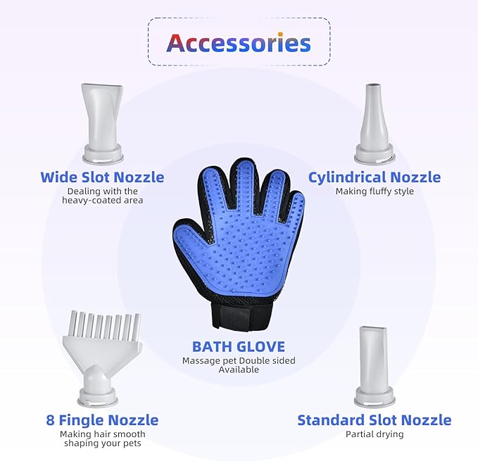 Entosun Dog Dryer, Pet Hair Dryer, 4.3hp/2800W Adjustable Speed and Temperature, High Velocity Dryer, Dog Blower Grooming Dryer with 4 Nozzles and Grooming Gloves (White)