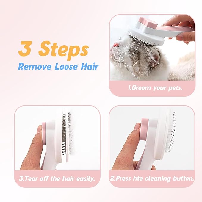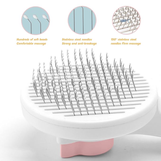 - 【One-Click Hair Removal Cat Brush】The premium comb comes with a self-cleaning button to make your hair removal easier and more efficient. After brushing, just press the button and the pet hair will be pushed out of the brush. As a cat deshedding brush, it's perfect for shedding and massaging your pets without scratching your pet's skin, even the sensitive skin. Besides, round massage beads is good for preventing skin disease and improve blood circulation.