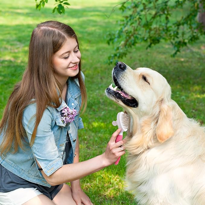 Dog Grooming Brush with Release Button Self Cleaning Slicker Brushes for Cats Dog Mats and Tangled Hair Grooming Comb Hair Brush Gently Removes Loose Undercoat Pink