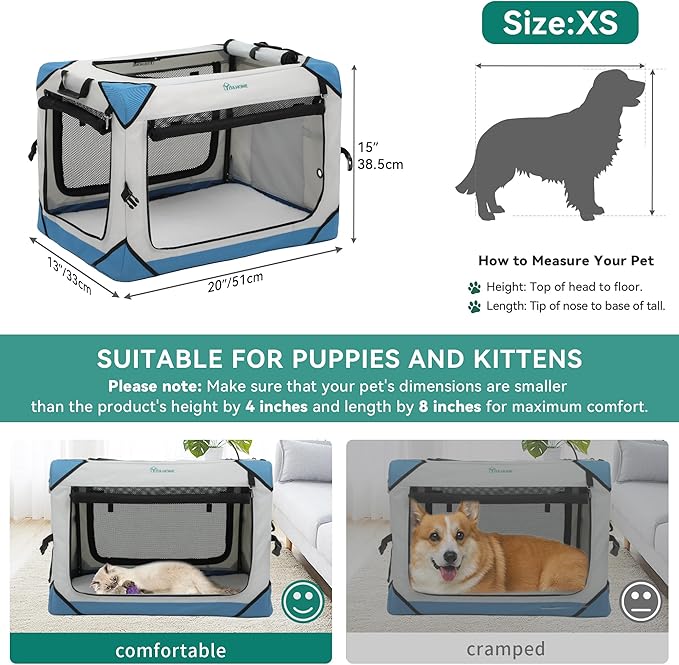 YITAHOME Collapsible Dog Crate, 4-Door Portable Travel Dog Crate with Durable Mesh Windows, Foldable Soft Dog Crate Kennel for Indoor & Outdoor(20" L x 13" W x 15" H)