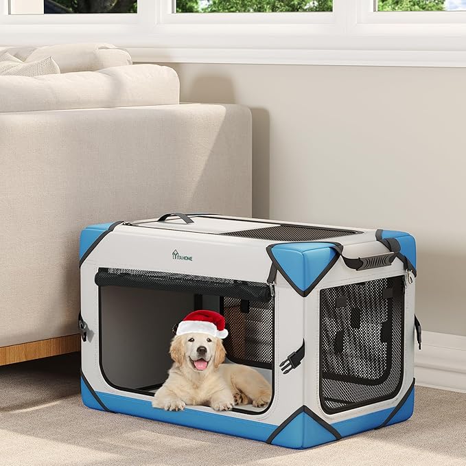 - ?�Secure and Comfortable?‘This foldable soft dog crate features four breathable mesh windows that facilitate optimal airflow and visibility; A bottom safety latch ensures pet security and prevents escapes; The mesh panels can be easily rolled up and fastened with Velcro to achieve improved air circulation and convenient pet monitoring.