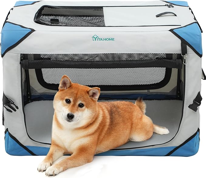 YITAHOME Collapsible Dog Crate, 4-Door Portable Travel Dog Crate with Durable Mesh Windows, Foldable Soft Dog Crate Kennel for Indoor & Outdoor(30" L x 21" W x 21" H)