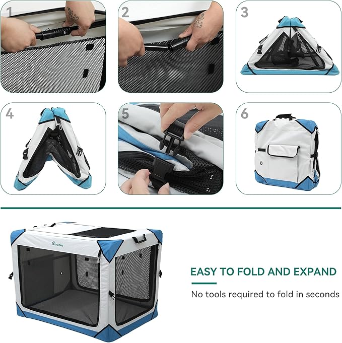 - ?�Easy to Install?‘This soft dog crate can be effortlessly assembled in seconds without any tools; Can be conveniently folded flat for compact storage and portability to gain valuable space.