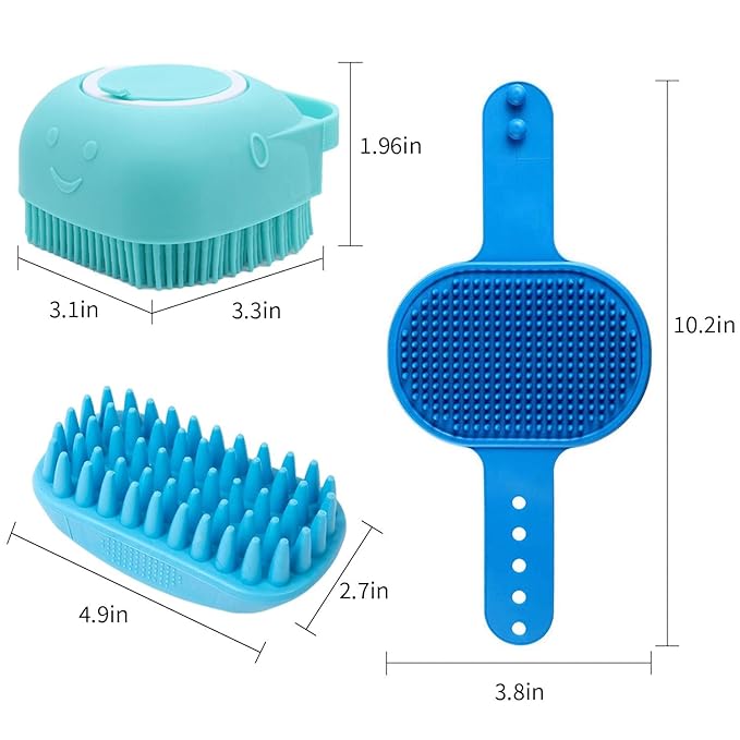 - 【Pet Bath Brush Set】This dog bath brush set contains three brushes with different functions, which can effectively solve your pet's bath, hair removal, massage and beauty problems. Bring a very comfortable bath to the dog and have a soothing massage effect.