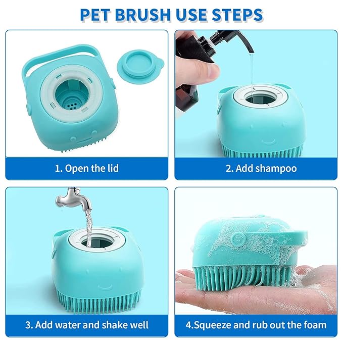 - 【Easy to use】Pet soft brush is light in weight and small in size, suitable for all kinds of liquids, and it also increases the foaming effect of shampoo. Just squeeze it gently, the shampoo can easily flow and foam, thus saving more pet shampoo.