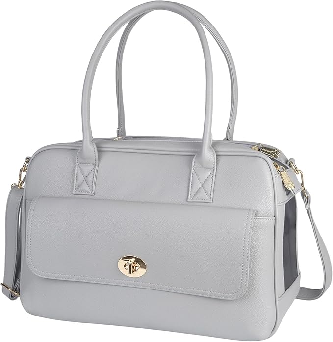 Fashion Pet Carrier Dog Purse Carrier Cat Soft-Sided Carriers for Puppy Kitten, Stylish Leather Handbag Tote Travel Pet Bag for Small Dogs Cats, TSA Airline Approved (Grey)