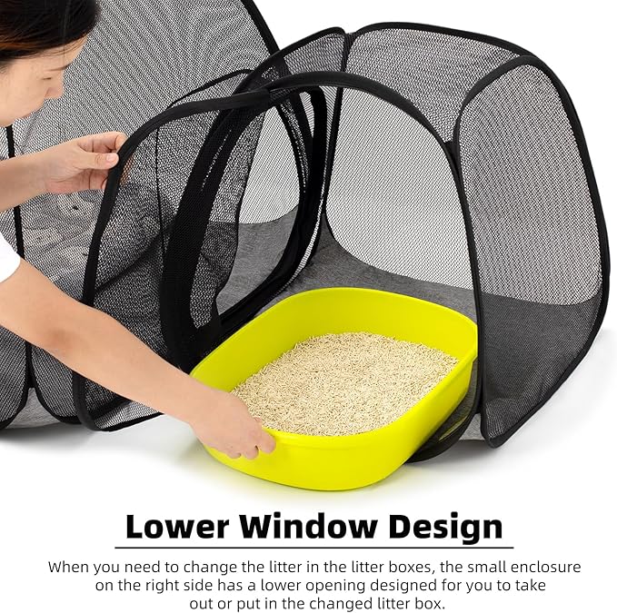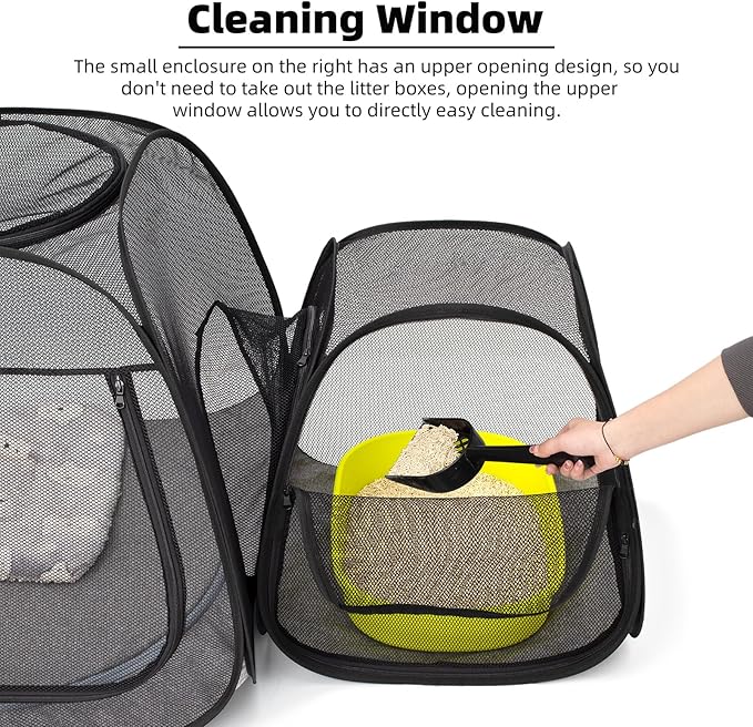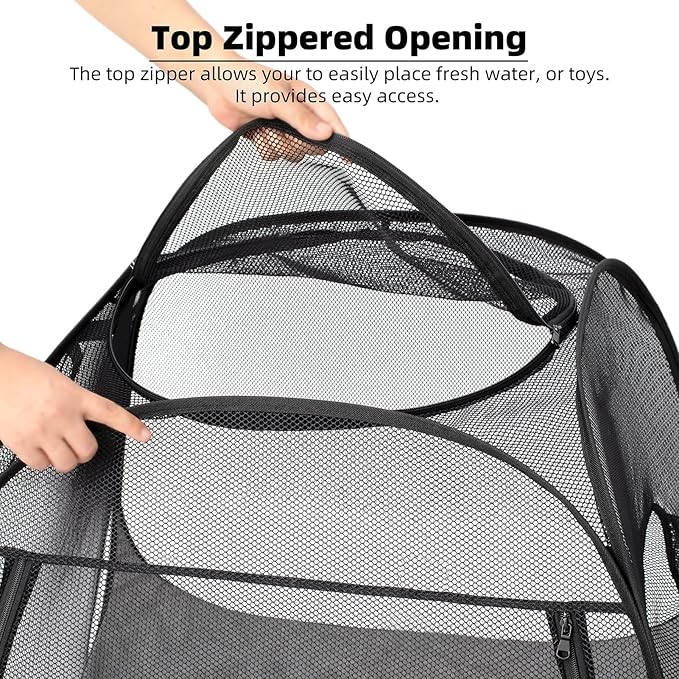 - Top & Bottom Zippered Design: The top zipper allows you to easily place fresh water, or toys. It provides easy access. You was able to keep him safely contained when you wasn’t able to monitor him. Bottom zipper you can remove it for washing, if necessary. It's also nice for outdoor use if you wanted to place the enclosure on your lawn.