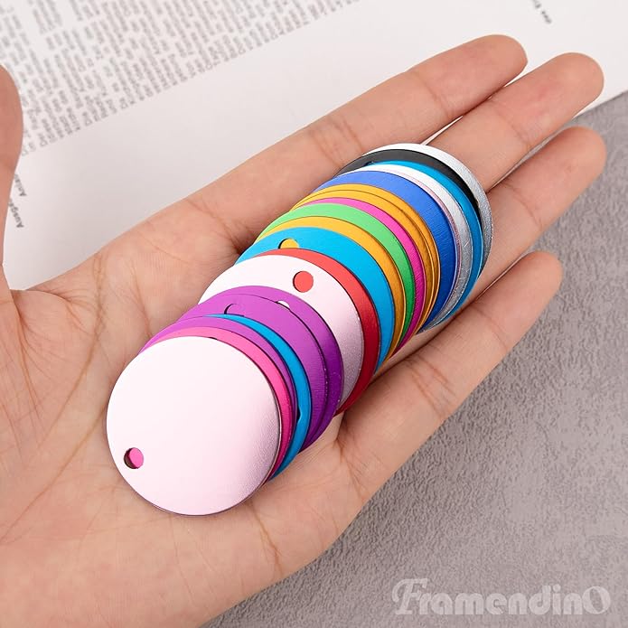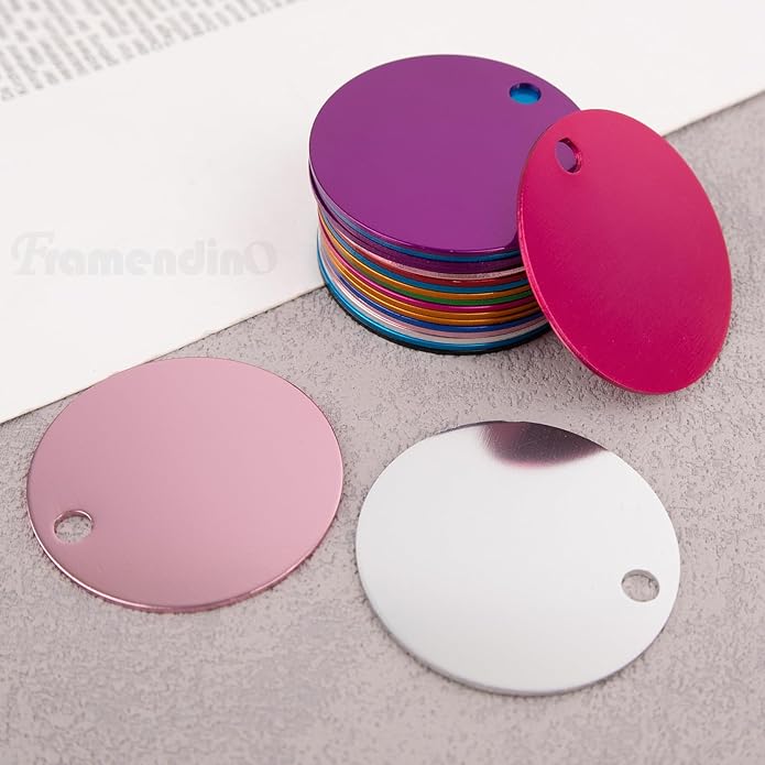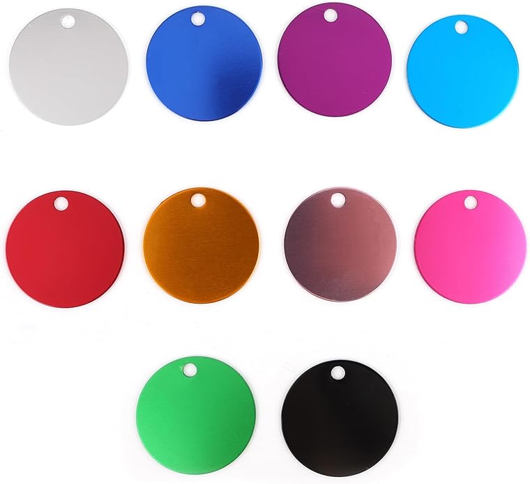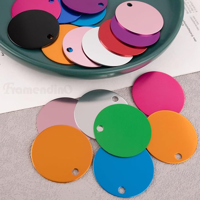 Framendino, Pet ID Tag Colorful Blank Round Double Sided Pets ID Tag Name Phone Number ID Tags Aluminum Charms