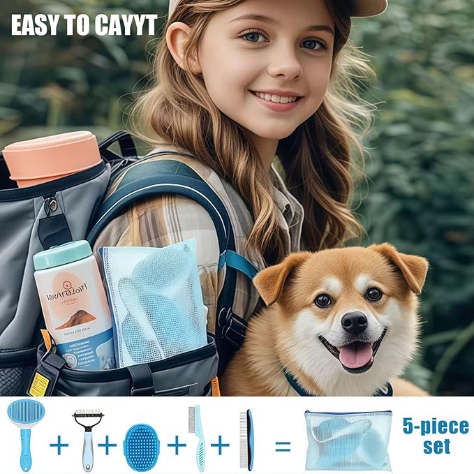- 【Pet Coat Grooming Kit】 Get professional grooming results at home with this comprehensive dog grooming kit. Includes a pet brush, undercoat rake, flea comb, bath brush, and metal comb so your beloved pet always has the best grooming care and looks great. Suitable for small, medium and large puppies.