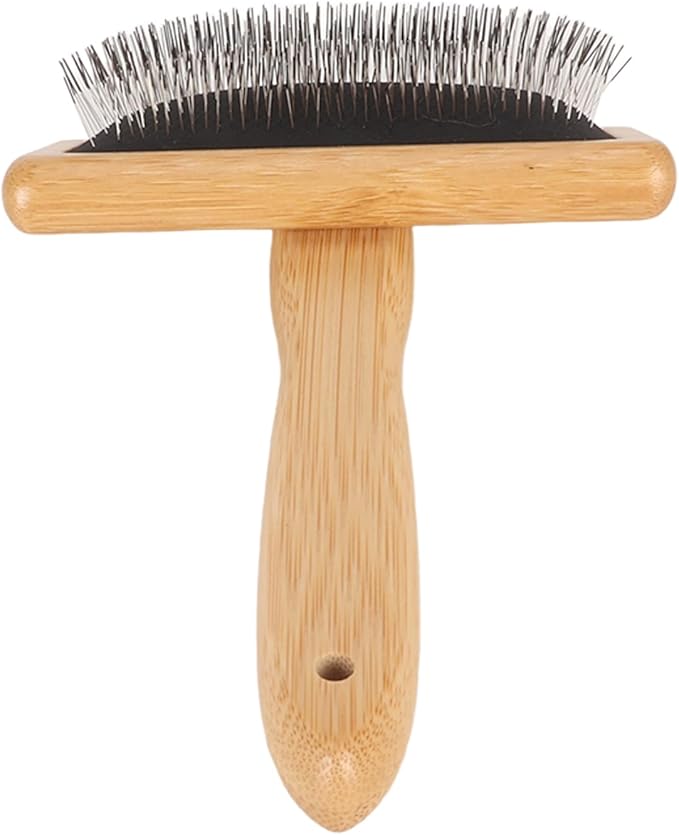 - 【Reliable Material】Composed of flexible stainless steel needles and liners, the wool carding brush is softly resilient when brushing and are not easily worn or broken. The handle of the grooming comb is made of bamboo material, finely polished with smoothly curves.