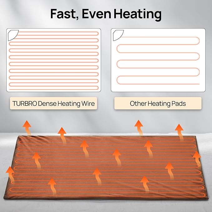 - 🐾Generously Sized for Large Pets: The 48'' x 28'' dimensions of TURBRO's heating pad is perfect for larger breeds like Golden Retrievers, Great Danes, and Saint Bernards. This spacious design ensures ample room for your pets to stretch out and bask in soothing warmth from head to paws.