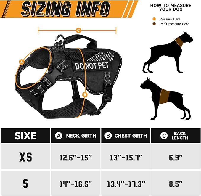 - Size Guide:XS Neck girth 12.6”-15”, Chest girth 13”-15.7”, Small Neck girth 14”-16.5”, Chest girth 13.4”-17.3”. Please measure for your dog to make sure the harness fit before placing the order. Recommend for small dog breeds such as chihuahua,Yorkie,corgi,Shiba,Pug etc.