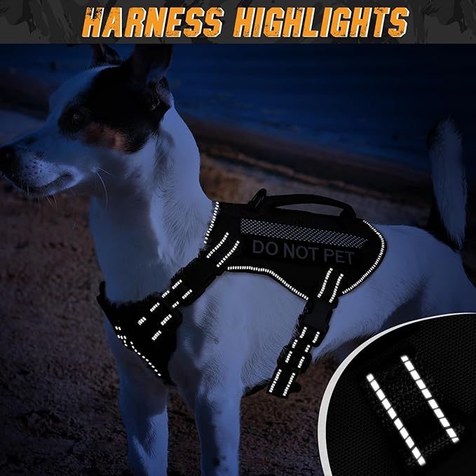 - Maximum Safety:Vertical grab nylon handle for quick control your dog or give a helpful lift when encountering obstacles. Reflective ribbon on the dog harness enhance visibility in dark environments and reduces the incidence of car accidents.